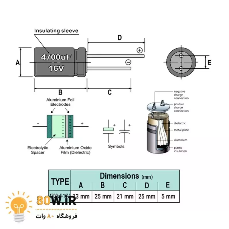 متاسفانه این کالا در حال حاضر موجود نیست. میتوانید از طریق لیست بالای صفحه، از محصولات مشابه این کالا دیدن نمایید.این خازن ها به شکل استوانه ای بوده و تا ظرفیت های بالا ساخته می شوند. واحد اندازه گیری این خازن ها میکرو فاراد است که بر روی بدنه آن ظرفیت و حداکثر ولتاژ کاری نوشته می شود.