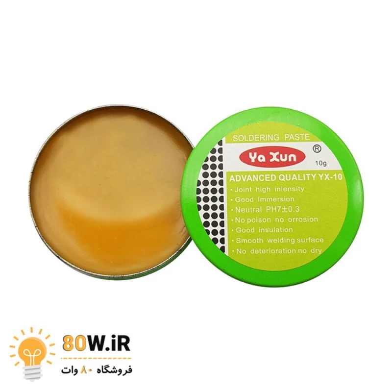 متاسفانه این کالا در حال حاضر موجود نیست. میتوانید از طریق لیست بالای صفحه، از محصولات مشابه این کالا دیدن نمایید.اگر بخواهیم دو بخش رسانا را با لحیمکاری به هم متصل کنیم اتصال آنها باید کاملاً تمیز و عاری از هرگونه چربی، رنگ و اکسید باشد، بنابراین از آنجا که در زمان لحیمکاری درجه حرارت زیاد است، در سطح مورد نظر لایهای اکسید به وجود میآید و پس از لحیمکاری ممکن است این لایه اکسید مانع از تماس الکتریکی بین آن دو شود، برای جلوگیری از چنین اتفاقی از روغن لحیم استفاده میشود. این روغن از مادهای به نام کالیفون تشکیل شده و اکسید و مواد زائد را حل میکند.