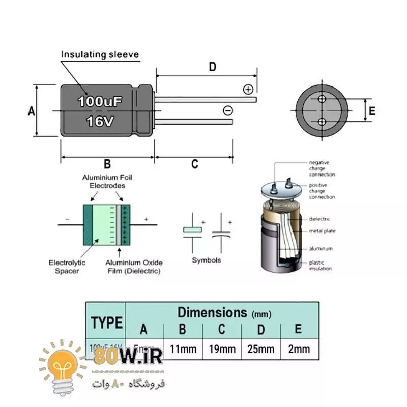 خازن الکترولیتی 100uF 16V (بسته 20 عددی)