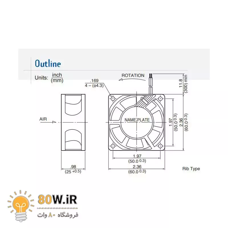 جت فن 12V-0.26A سایز 6x6X2.5 مارک MINEBEA مدل 2410ML-04W-B50