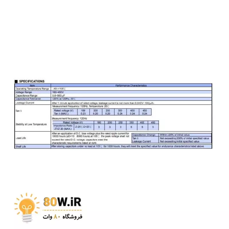 متاسفانه این کالا در حال حاضر موجود نیست. میتوانید از طریق لیست بالای صفحه، از محصولات مشابه این کالا دیدن نمایید.خازن الکترولیتی 33 میکروفاراد 200 ولت – 33UF 200V نوع خازن : Miniature Sized , High Ripple Current برند: TAICON سری : BY ابعاد: 10×20 میلیمتر فاصله پین: 5 میلیمتر دمای کاری : -40 تا 105 درجه سانتیگراد عمر مفید : 10000 ساعت