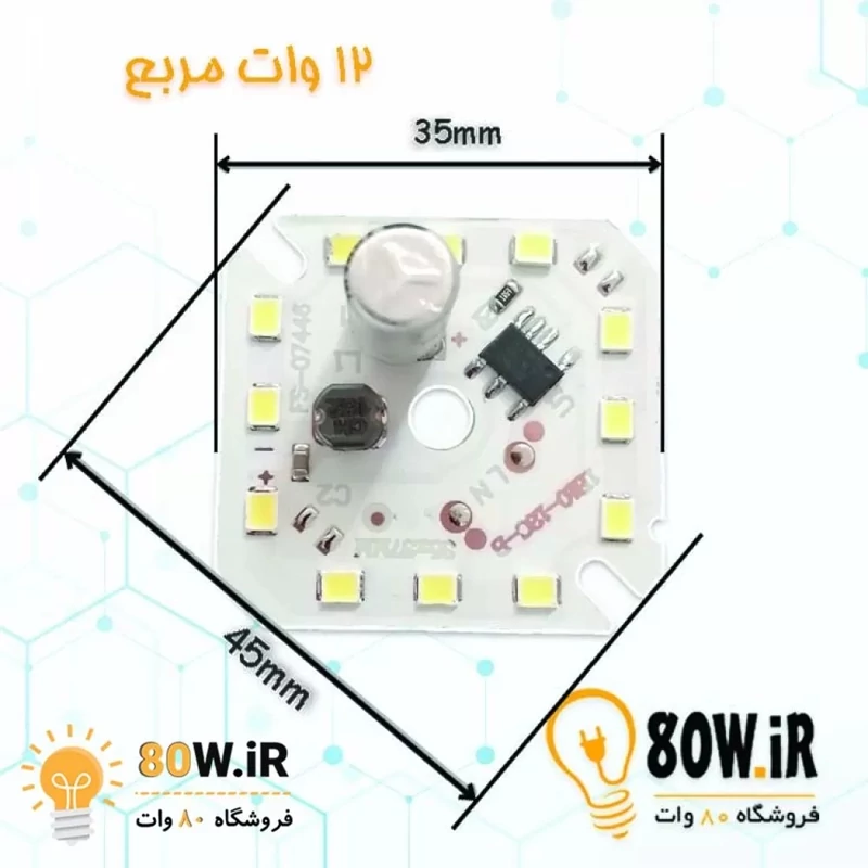 چیپ لامپ 12 وات 220 ولت مربع