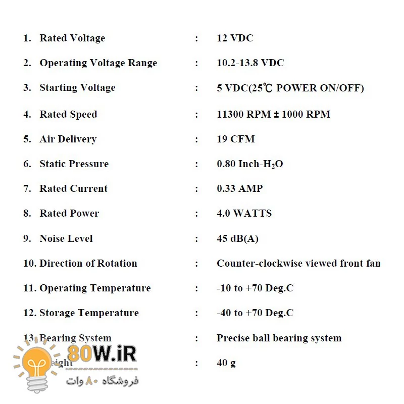 متاسفانه این کالا در حال حاضر موجود نیست. میتوانید از طریق لیست بالای صفحه، از محصولات مشابه این کالا دیدن نمایید.جت فن 12 ولت 4 وات سانان SUNON سه سیمه دور بالا مدل PMD1204PQB1-A با ابعاد 4x4x2.8 سانتی متر Fan PMD1204PQB1-A(2).F.GN DC12V 4W, 3-WIRE, 40X28MM توجه فرمائید این فن به دلیل شرایط بد انبارداری دارای خط و خش جزئی در بدنه و مقداری اکسید شدگی بر روی قسمت فلزی می باشد.لازم به ذکر است که از نظر کارایی مشکلی نداشته و همگی تست شده و دارای مهلت گارانتی تست می باشند.