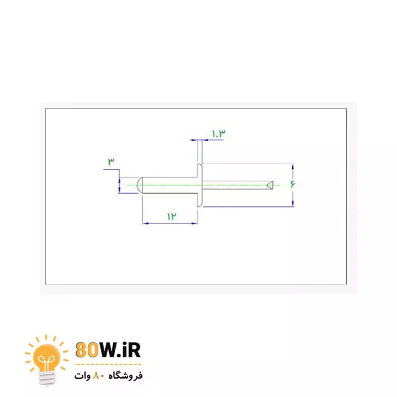 میخ پرچ آلومینیومی سایز 12× 3 (بسته 20 عددی)