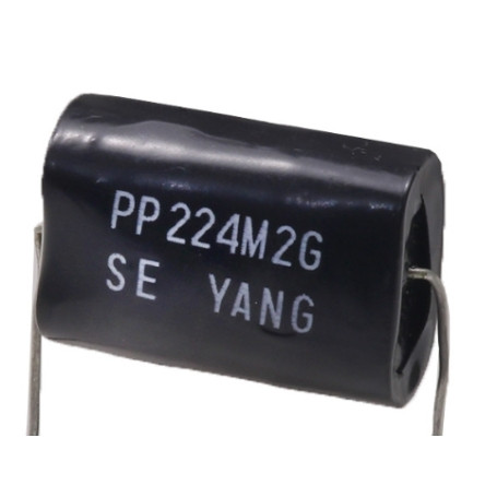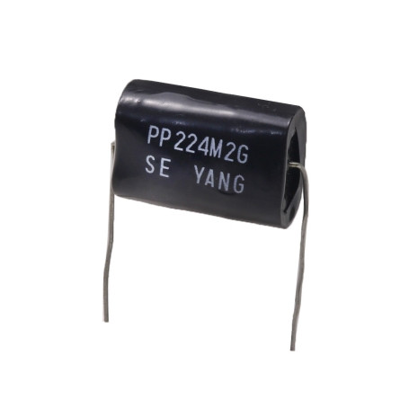 ویژگی ها: خازن پروپیلن صوتی 0.22 میکروفاراد 400 ولت آکسیال PP با تلرانس 20 درصد مارک YANG، مناسب برای سیستمهای صوتی با کیفیت و مدارات RF و کراس اور