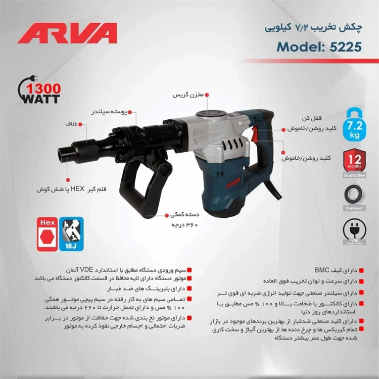 چکش تخریب7.2کیلویی 1300وات مدل5225آرواarva(پس کرایه)
