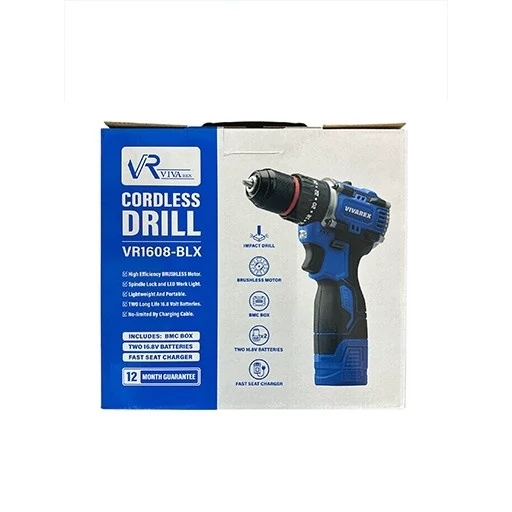 دریل شارژی 16 ولت چکشی دو باطری براشلس ویوارکس مدل VR1608-BLX