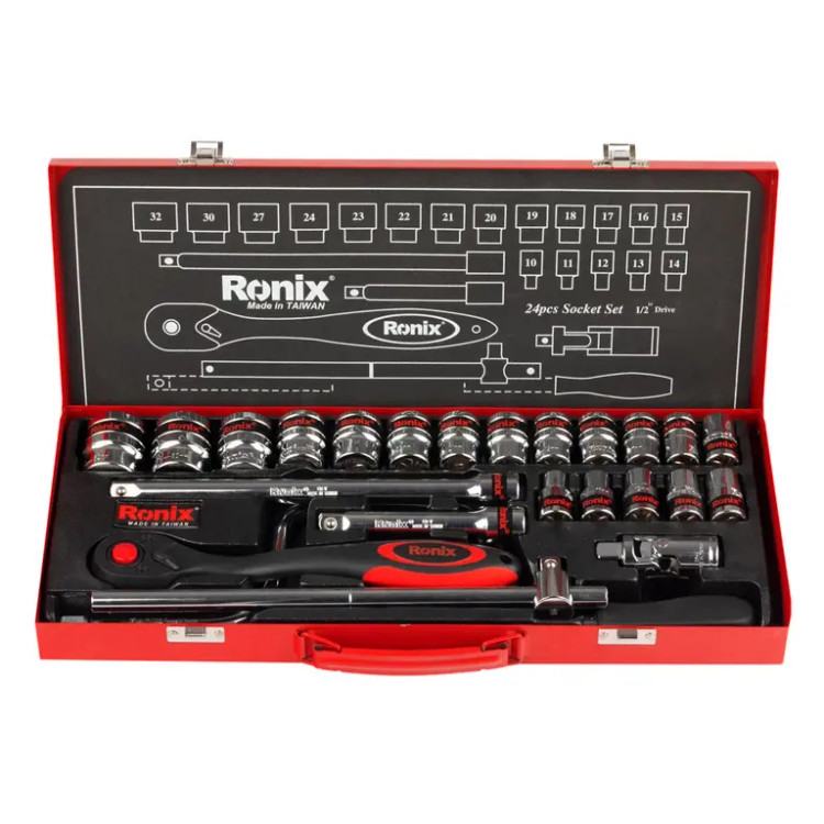 سایز سوکتها شامل بکس های 1/2 اینچی با سایز های 10و 11و 12و 13و 14و 15و 16و 17و 18و 19و 20و 21 و 22و 23و 24و 27و 30و 32 میلی متر