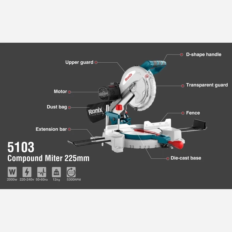 -موتور قدرتمند2000 واتی که توانایی تولید سرعتی بالغ بر 5300 دور بر دقیقه را دارد برای انجام کاربری های مختلف -استفاده از تسمه برای انتقال قدرت از موتور به تیغه جهت کاهش صدا و لرزش و راحتی هرچه بیشتر کاربرحین کار -ساخته شده از مواد اولیه با کیفیت به منظور دستیابی به حداکثر کارایی و دقت در برش - -طراحی سبک وجمع و جور برای سهولت در جابجایی -دارای صفحه عریض شونده جهت برش های متوالی -دسته افقیD شکل برای استفاده آسان کاربر در حین عملیات برشی - مجهز به سیستم قفل کن پیشرفته و سریع میز برش در 9 زاویه کاربردی جهت انجام برش های بازویی -دارای سیستم جمع آوری گرد و غبار -دارای گیره نگهدارنده قطعه کار -مجهز به مکانیزم قفل شفت برای تعویض سریع و آسان صفحه برشی -استفاده از سوییچ ضد غبار به منظور افزایش طول عمر -قابلیت انجام برش زاویه دار از دو موضع کفی و بازویی - مجهز به گونیای مدرج وگونیای متحرک - دارای تیغ اره الماسه TCG مخصوص برش MDF -مجهز به گارد محافظ تیغه برای افزایش ایمنی کاربر