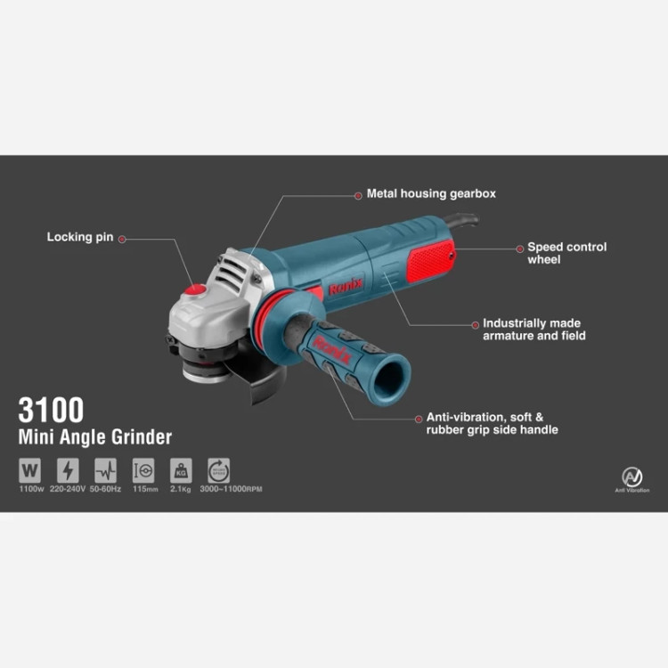 مینی فرز برقی 115 میلی متری 1100 وات دیمردار 3100 ronixرونیکس