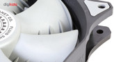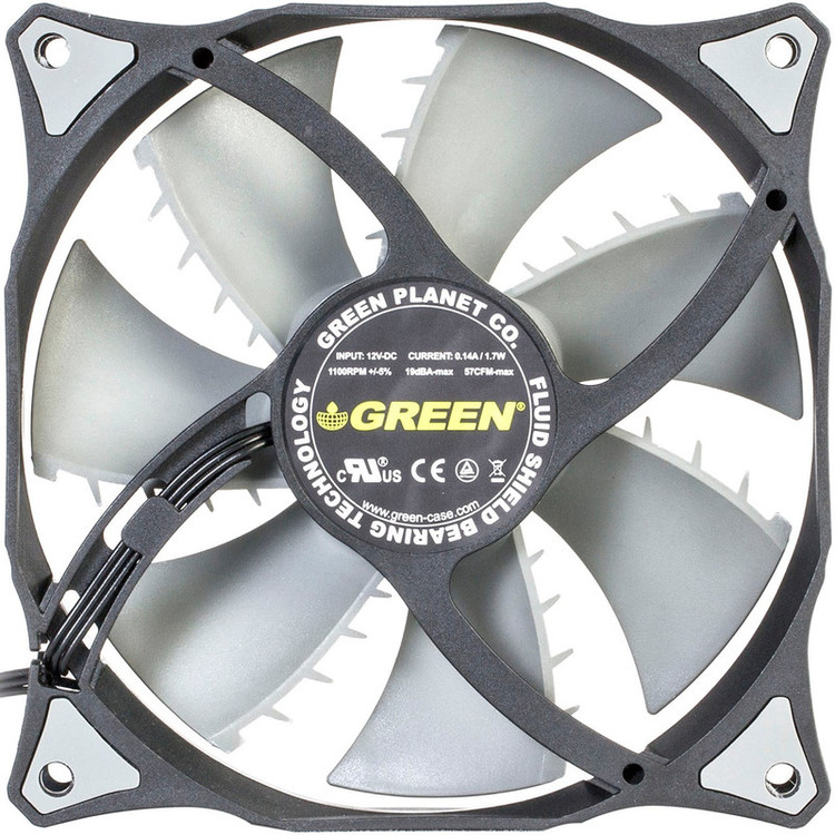 فن کیس «GF120-FSB» از برند «گرین» (Green)، از نوع 120میلیمتری است که گاهی اوقات با اسم 12سانتیمتری هم از آن یاد میشود. این فن با استفاده از ترکیب دو رنگ مشکی و توسی تولید شده است و برای خنککردن محیط داخلی کیسهای کامپیوتری کاربرد دارد. در دو طرف فن و در محلهای عبور پیچها و اتصال به بدنهی کیس، از پدهای سیلیکونی استفاده شده است. این پدها لرزش را بهخوبی جذب میکنند و مانع ایجاد سروصدای ناشی از گردش فن میشوند. در طراحی هستهی فن، از فناوری Fluid Shield Bearing استفاده شده که نویز حرکتی موتور در آن بسیار کم است و اصطکاک کمی مابین میلهی چرخنده و هستهی خود دارد. همین موضوع باعث شده تا طول عمر فن GF120-FSB از 100 هزار ساعت بیشتر باشد. پرهی فن GF120-FSB بهسادگی از محل خود جدا میشود و میتوانید بدون دردسر، نسبت به تمیزکردن آن اقدام کنید. در طراحی پرهها از الگوی بال کوسه استفاده شده است. در این طراحی، زائدههایی در انتهای پرهها مشاهده میشود که علاوهبر زیباترکردن فن، عملکرد آن را هم بهبود میدهد. این زائدهها میزان جریان هوا را افزایش میدهند و فشار استاتیک فن را بهبود میبخشند. سرعت چرخش این فن ثابت و 1100 دور بر دقیقه است.
