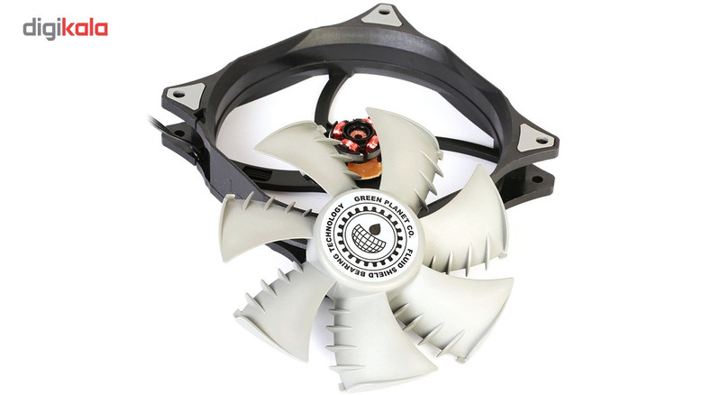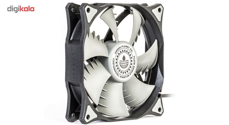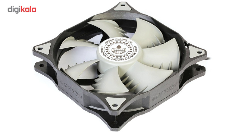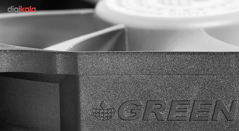 فن کیس «GF120-FSB» از برند «گرین» (Green)، از نوع 120میلیمتری است که گاهی اوقات با اسم 12سانتیمتری هم از آن یاد میشود. این فن با استفاده از ترکیب دو رنگ مشکی و توسی تولید شده است و برای خنککردن محیط داخلی کیسهای کامپیوتری کاربرد دارد. در دو طرف فن و در محلهای عبور پیچها و اتصال به بدنهی کیس، از پدهای سیلیکونی استفاده شده است. این پدها لرزش را بهخوبی جذب میکنند و مانع ایجاد سروصدای ناشی از گردش فن میشوند. در طراحی هستهی فن، از فناوری Fluid Shield Bearing استفاده شده که نویز حرکتی موتور در آن بسیار کم است و اصطکاک کمی مابین میلهی چرخنده و هستهی خود دارد. همین موضوع باعث شده تا طول عمر فن GF120-FSB از 100 هزار ساعت بیشتر باشد. پرهی فن GF120-FSB بهسادگی از محل خود جدا میشود و میتوانید بدون دردسر، نسبت به تمیزکردن آن اقدام کنید. در طراحی پرهها از الگوی بال کوسه استفاده شده است. در این طراحی، زائدههایی در انتهای پرهها مشاهده میشود که علاوهبر زیباترکردن فن، عملکرد آن را هم بهبود میدهد. این زائدهها میزان جریان هوا را افزایش میدهند و فشار استاتیک فن را بهبود میبخشند. سرعت چرخش این فن ثابت و 1100 دور بر دقیقه است.