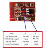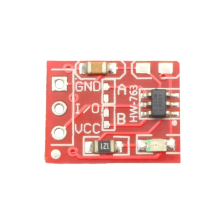 مشخصات فنی ماژول تاچ پد لمسی TTP223: ماژول تاچ پد لمسی TTP223 دارای مشخصات فنی زیر است: ولتاژ کاری: این ماژول با ولتاژ 2.0 تا 5.5 ولت کار می کند. خروجی: خروجی ماژول تاچ پد لمسی TTP223 یک سیگنال دیجیتال است که برابر با 0 یا 1 می باشد. حساسیت: این ماژول دارای 2 حساسیت مختلف است که می توان آن را با استفاده از پین S حرکت داد. زمان پاسخگویی: زمان پاسخگویی این ماژول حدود 60 میلی ثانیه است. جریان مصرفی: جریان مصرفی این ماژول در حالت آماده به کار کمتر از 1 میلی آمپر و در حالت کار حدود 8 میلی آمپر است. دمای کاری: دمای کاری این ماژول بین -20 تا 70 درجه سانتی گراد است. ابعاد: اندازه ماژول تاچ پد لمسی TTP223 حدود 24 × 24 × 7 میلی متر است. مصرف انرژی: این ماژول در حالت آماده به کار کمتر از 1 میلی آمپر و در حالت کاری حدود 8 میلی آمپر است. ماژول Touch Sensor TTP223 به هنگام لمس صفحه پشت فیبر 4 حالت خروجی دارد که با لحیم کردن نقاط A و B بر روی برد تغییر میکند و این حالتها عبارت اند از : (اتصال A و B هر دو قطع) خروجی 1 منطقی لحظه ای (اتصال A و B هر دو وصل) خروجی 0 منطقی toggle (اتصال A وصل و B قطع) خروجی 0 منطقی لحظه ای (اتصال A قطع و B وصل) خروجی 1 منطقی toggle