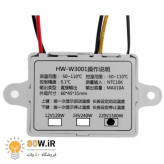ماژول ترموستات XH-W3001 مدل ۲۲۰ ولت با محدوده دمایی -50 تا 110 درجه سانتی گراد مشخصات ولتاژ کاری ۲۲۰ ولت دقت اندازه گیری ۰٫۱ درجه اندازه گیری دما در بازه ۵۰- الی ۱۱۰ درجه سانتی گراد قابلیت کارکردن در دو مد گرمایش و سرمایشی تنظیم ماژول XH-W3001 در مد گرمایشی و سرمایشی : برای کار در مد گرمایشی می بایست با فشردن دکمه Up دمایی که میخواهید در آن دما هیتر راه اندازی شود را وارد کنید مثلا دمای ۲۳ درجه ، حال با فشردن دکمه Down دارد می توانید مشخص نمایید که هیتر در چه دمایی قطع شود مثلا در ۳۰ درجه ، حال چنانچه دما محیط به ۲۳ درجه سانتی گراد برسد هیتر متصل شده به خروجی ماژول روشن شده و باعث می شود تا دمای محیط افزایش یابد. با رسیدن دمای محیط به مقدار تعیین شده (۳۰ درجه) هیتر خاموش می شود.این فرایند بطور دائم با تغییر دما ادامه پیدا می کند. برای کار در مد سرمایشی چنانچه تنظیمات انجام گرفته برای مد گرمایشی را بلعکس نمایید می توانید از ماژول در مد سرمایشی استفاده کنید. یعنی با فشردن دکمه Up دما ۳۰ درجه را تنظیم نمایید. و با فشردن دکمه Down دما ۲۳ درجه را تنظیم نمایید.حال چنانچه دمای محیط آن قدر گرم شود که به دما ۳۰ درجه برسد دستگاه کولر متصل شده به خروجی ترموستات روشن شده و سعی می کند دمای محیط را خنک کند. با روشن شدن کولر و سرد شدن محیط ، کولر در دمای ۲۳ درجه تنظیم شده خاموش می شود.واین سیکل با تغییر دما ادامه پیدا می کند تا دما در یک بازه خاص حفظ شود.