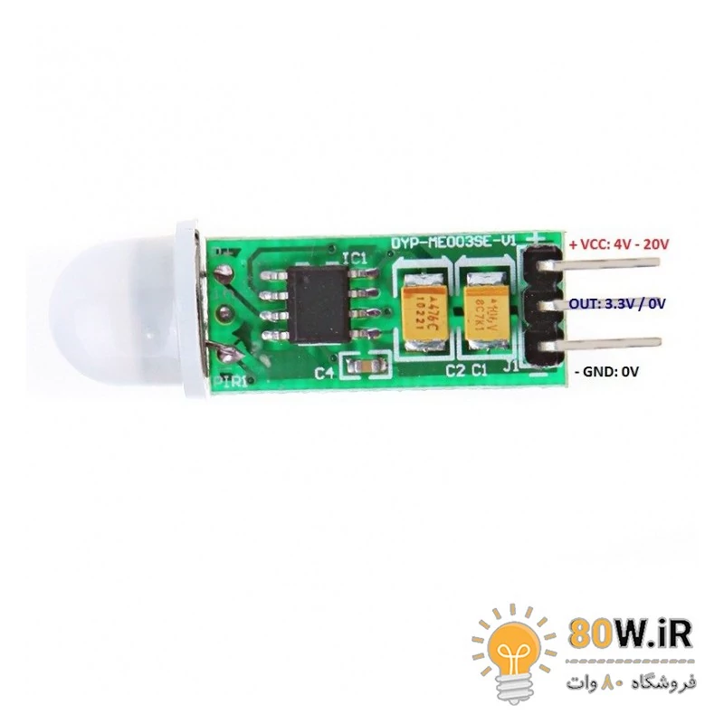 سنسورهای PIR یا Passive Infra-Red برای تشخیص حرکت بر مبنای نور مادون قرمز ناشی از گرمای موجود در محیط کاربرد دارند. از همین رو استفاده از این سنسور ها در سیستم های امنیتی برای تشخیص حرکت انسان و یا ورود های غیر مجاز بسیار رایج می باشد. راه اندازی اولیه و کالیبره شدن این سنسورها چیزی در حدود 10 تا 60 ثانیه به طول می انجامد و در طی این مدت برای تنظیم دقیق نباید در شعاع دید آنها حرکتی انجام پذیرد. خروجی این سنسور تشخیص حرکت می تواند مستقیما به یکی از پایه های میکروکنترل متصل گردد و در صورت تشخیص هر نوع حرکتی توسط سنسور مقدار این پین یک می گردد. مشخصات ولتاژ کاری: 4.5 تا 20 ولت dc مسافت تحت پوشش: 3متر زاویه تشخیص: 100 درجه قابل کار با باتری کاربردها سیستم های امنیتی و ساخت دزدگیر روشن نمودن چراغ های منازل ، پارگینگ ، ساختمان و ... به وصورت هوشمند و بر اساس تشخیص حرکت کنترل و اتوماسیون صنعتی سیستم ها هشدار درب های اتوماتیک نور پردازی هوشمند اسباب بازی ها