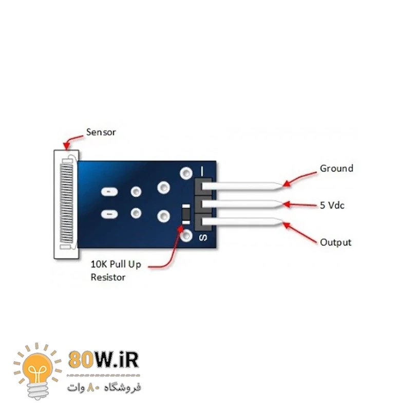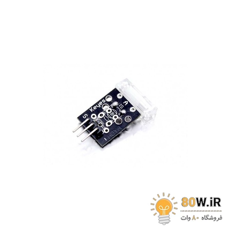 ماژول سنسور ضربه و ارتعاش KY-031 با حساسیت بالا این ماژول یک سنسور حساس به شوک یا لرزش است که وقتی شوک یا لرزشی را دریافت می کند پین سیگنال آن LOW می شود، این ماژول می تواند در سیستم های امنیتی و یا مانیوتورینگ استفاده گردد و به راحتی می توانید آن را در کنار برد آردوینو یا هر میکروکنترل دیگری استفاده نمایید. مشخصات فنی ماژول ضربه و ارتعاش KY-031 ولتاژ عملیاتی: ۳.۳ تا ۵ ولت DC جریان عملیاتی: کمتر از ۱۰ میلی آمپر محدوده فرکانس: ۱۰ تا ۵۵۰۰ هرتز حساسیت: بین ۱۰ الی ۱۲۰ میلی ولت بر گیگاهرتز دمای عملیاتی: از منفی ۱۰ الی مثبت ۷۰ درجه سانتیگراد ابعاد: ۴۲ * ۱۰ * ۷ میلی متر خروجی: سیگنال دیجیتال به صورت HIGH/LOW (1/0) که توسط میکروکنترلرها و بردهای الکترونیکی خوانده شده و پردازش میشود. دقت: دقت این ماژول در تشخیص لرزشها به علت وابستگی به حساسیت و نوع نصب آن، متفاوت است و میتواند از چند درصد تا صد درصد باشد.