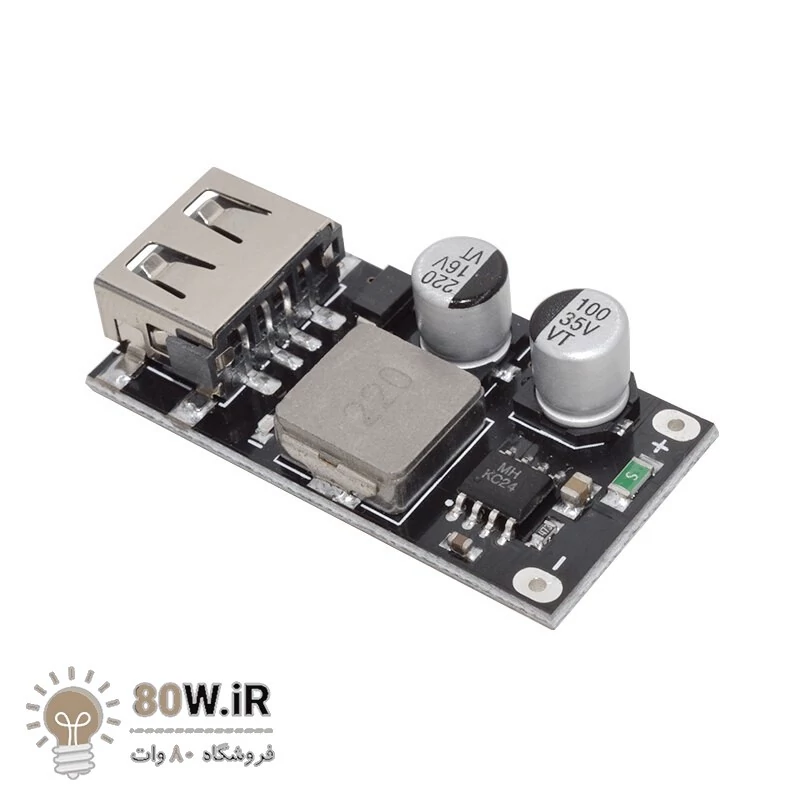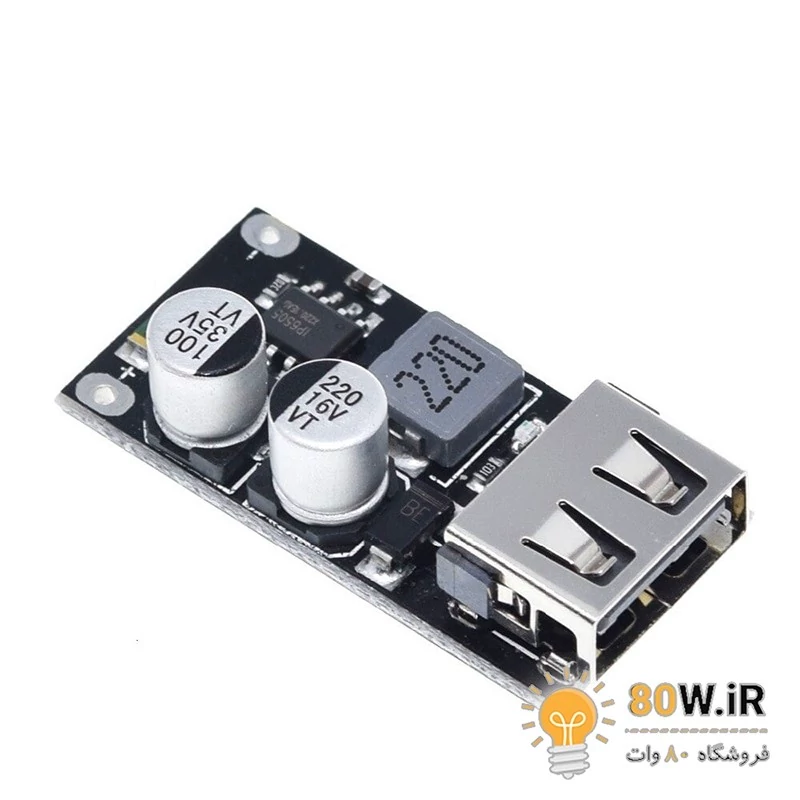 ماژول کاهنده شارژ سریع 24 وات با ولتاژ ورودی 6 تا 32 ولت. مشخصات ولتاژ ورودی: 6 تا 32 ولت ولتاژ خروجی: پیش فرض 5 ولت؛ پس از شروع شارژ سریع، به طور خودکار در 3-12 ولت تنظیم می شود. حداکثر توان خروجی: 24W حداکثر جریان: 5V/3.4A , 9V/2.5A , 12V/2A. حفاظت در برابر ولتاژ ورودی حفاظت از جریان بیش از حد ورودی و خروجی حفاظت در برابر اتصال کوتاه خروجی محافظت در برابر دمای بیش از حد پشتیبانی از پروتکل های شارژ سریع گوشی های آیفون، سامسونگ و پروتکلهای Qualcomm QC2.O and QC3.O ابعاد : 34.5x17x9mm کاربردهای ماژول شارژر سریع QC3.0: ماژول شارژر سریع QC3.0 را می توان در طیف گسترده ای از برنامه ها استفاده کرد، از جمله: دستگاه های تلفن همراه: QC3.0 با انواع دستگاه های تلفن همراه از جمله تلفن های هوشمند، تبلت ها و لپ تاپ ها سازگار است و امکان شارژ سریع در حال حرکت را فراهم می کند. وسایل نقلیه الکتریکی: فناوری QC3.0 را می توان در ایستگاه های شارژ وسایل نقلیه الکتریکی استفاده کرد تا زمان شارژ سریع تری را فراهم کند. پاوربانک ها: ماژول های QC3.0 را می توان در پاوربانک ها گنجاند تا شارژ سریع دستگاه های قابل حمل را فراهم کند. تجهیزات صنعتی: ماژول های QC3.0 را می توان در تجهیزات صنعتی برای شارژ سریع و کارآمد ابزارها و سایر دستگاه ها استفاده کرد. لوازم خانگی: ماژولهای QC3.0 را میتوان در لوازم خانگی مانند جاروبرقی، تصفیهکننده هوا و سایر دستگاههای هوشمند خانه برای شارژ سریع ادغام کرد.
