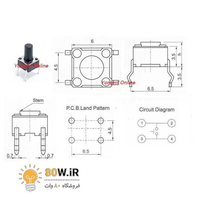 تک سوئیچ 6x6x7 4PIN (بسته 20 عددی)