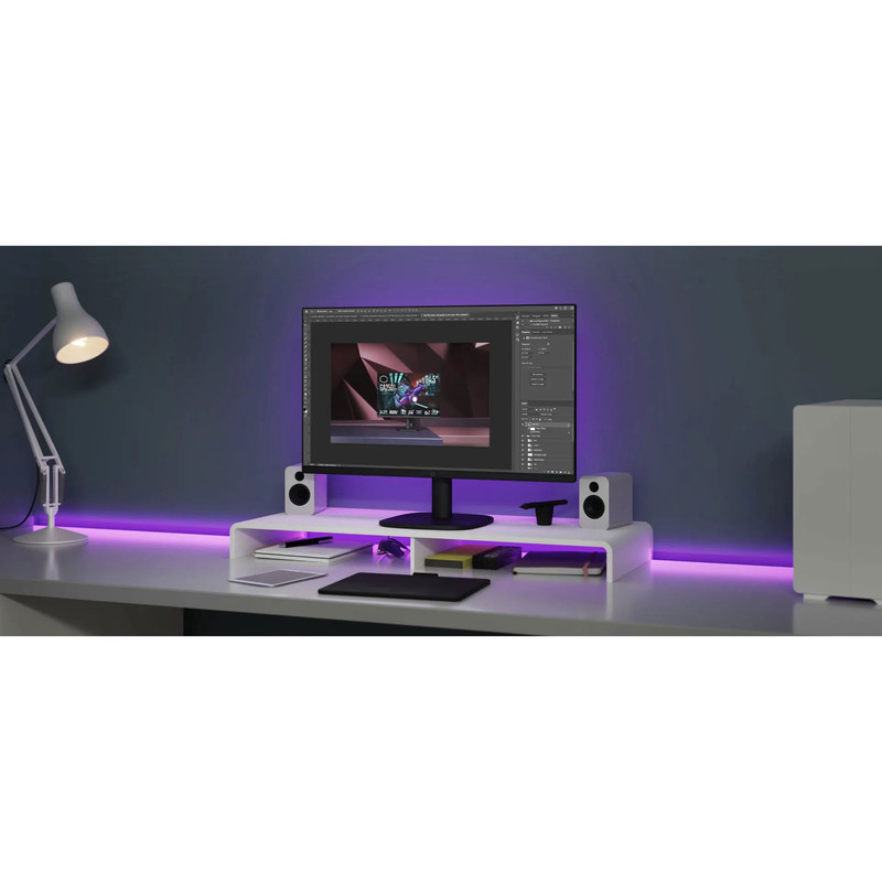 طراحی ارگونومیک این محصول شامل قابلیت اتصال به پایه دیواری VESA و تنظیم زاویه دید (5- تا 20 درجه) است. با وزن 3.9 کیلوگرم، همچنین سبک و کاربر پسند است. پورتهای HDMI و VGA امکان اتصال آسان به کنسولها و رایانههای شخصی را فراهم میکنند. همچنین، روشنایی 250 نیت برای استفاده در محیطهای داخلی با نور متوسط مناسب است.