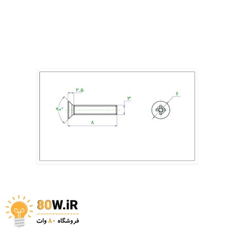 پیچ سر تخت M3 x 8 ارتفاع 8mm (بسته 20 عددی)