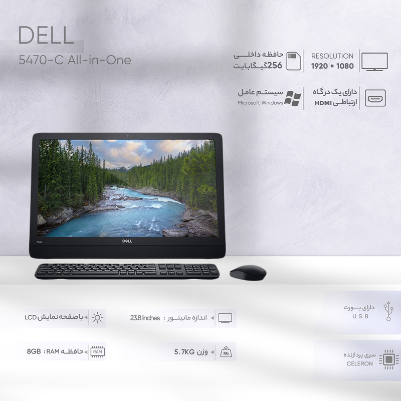 کامپیوتر همه کاره 23.8 اینچ دل مدل C-5470-Celeron J4105-8GB DDR4-256GB SSD