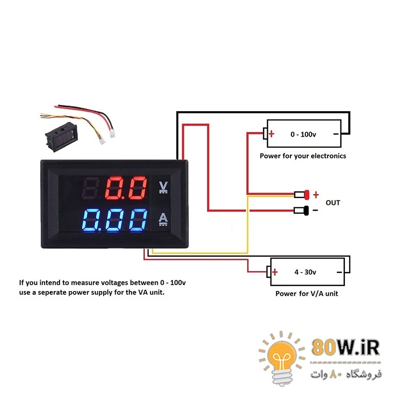 ولتمتر و آمپرمتر DC روپنلی 10 آمپر 0v-100v دو رنگ قرمز و آبی