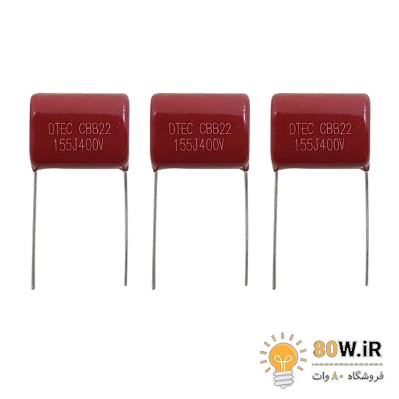 نوع خازن (Capacitor Type): خازن پلیاستر یا Polyester Capacitor. این نوع خازن از جنس پلیاستر ساخته شده است.