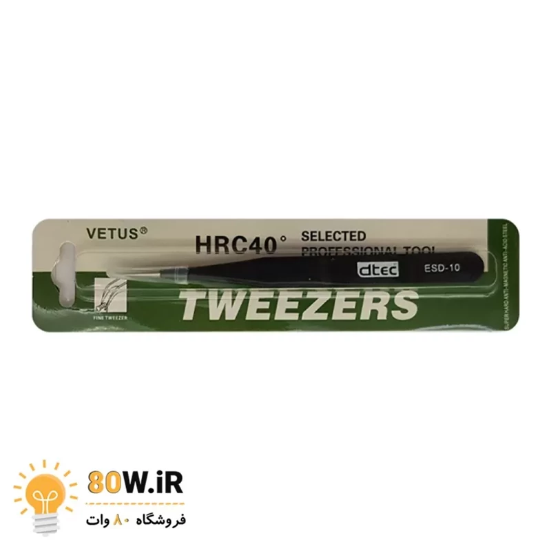 پنس ESD-10 با نوک سوزنی شکل با برند DTEC داری قابلیت ضد مغناطیسی و آنتی استاتیک، دارای مقاومت در برابر خورده شدن، ضد زنگ در اثر رطوبت، طراحی ارگونومی و مقاومت بالا برای گرفتن قطعات و اجسام ریز و ظریف از جملع قطعات الکترونیک SMD و DIP، نوک بسیار تیز و باریک،جنس بدنه فولاد آب دیده، طول 123 میلیمتر
