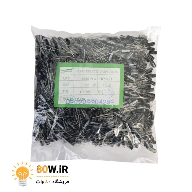 خازن الکترولیتی 22uF 50V (بسته 20 عددی)